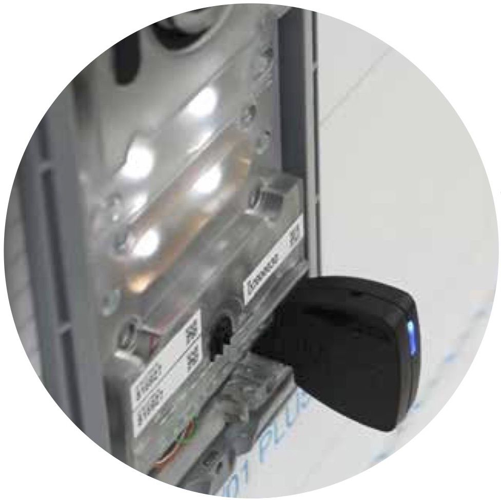 Die Video PLUS-Version ermöglicht die Zugangskontrolle über Näherungs-Tag mit dem integrierten 125kHz-RFID-Leser oder per Smartphone mit AutomationBT APP über Bluetooth.