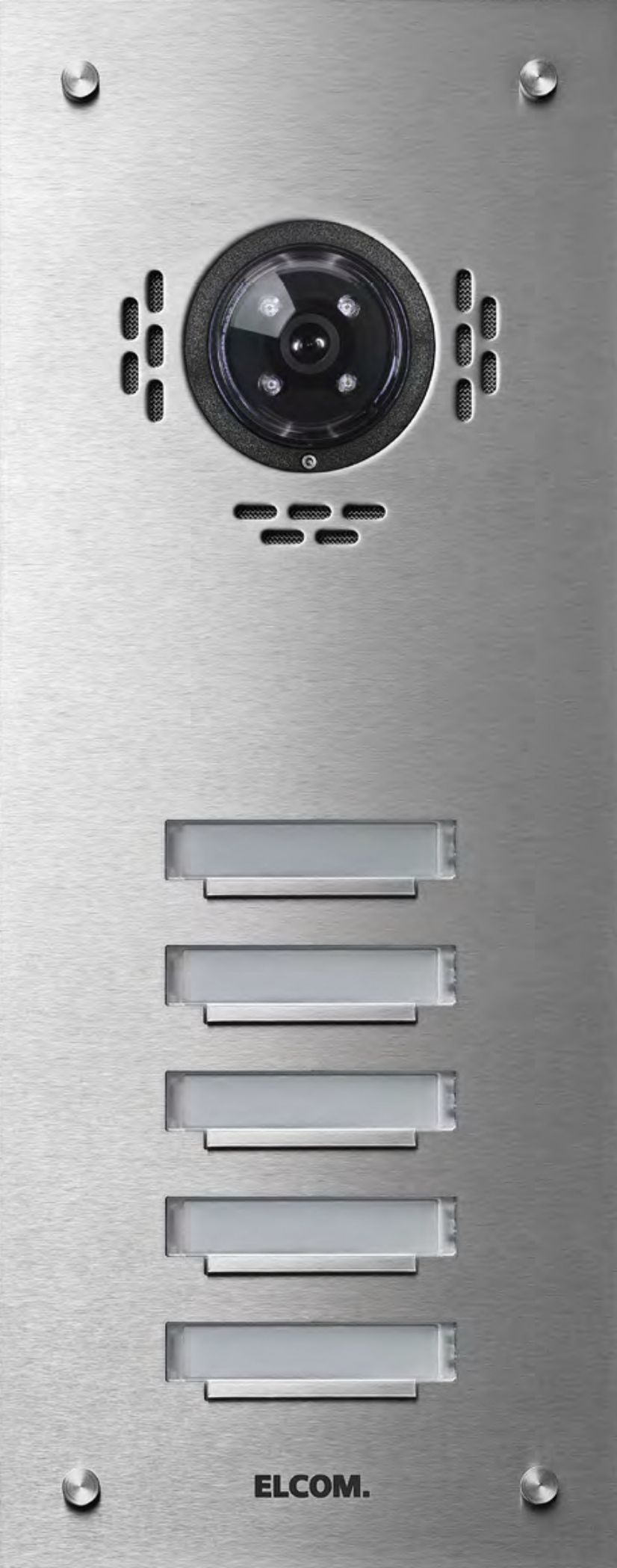 Die Aussensprechstelle elcom.one präsentiert sich als Aussensprechstelle der Premium-Klasse. Hochwertiger Edelstahl, modernstes Design und eine kompakte Kamera- /Lautsprechereinheit begeistern Elektroinstallateure wie Bauherren gleichermassen.Mit den edel gestalteten Aussensprechstellen elcom.one gelingt in jedem Fall ein perfekter Auftritt – Tag für Tag neu. Dazu trägt das Material Edelstahl ebenso bei wie der durchdachte Systemaufbau. Gestalterisch durchgängiges, modernes Design für Aussensprechstellen-Grössen mit 1 bis 24 Teilnehmern macht elcom.one zur richtigen Wahl – vom Einfamilienhaus bis zur mehrgeschossigen Wohn- oder Büroanlage. Ob Aussensprechstelle in Audio- oder Videoausführung: Beide Versionen kommen in der gleichen Plattengrösse und sind als Aufputz- oder Unterputzvariante verfügbar. Damit ist späteres Umrüsten auf Videotechnik problemlos möglich.Ihre Vorteile auf einen Blick:• Aussensprechstellen aus hochwertigem Edelstahl• keine sichtbare Verschraubung• Aufputz und Unterputz sowie Audio und Video in gleicher Frontplattengrösse• aussergewöhnlich flache Aufputzvariante (nur 28,5 mm)• elcom.one Aussensprechstellen mit Briefkästen für ein oder zwei Teilnehmer• einfacher Namensschildwechsel ohne Spezialwerkzeug• einfach zu installieren durch 2-Draht-Technik• Plug and Play: adressiert sich automatisch durch• integriertes Relais potentialfrei
