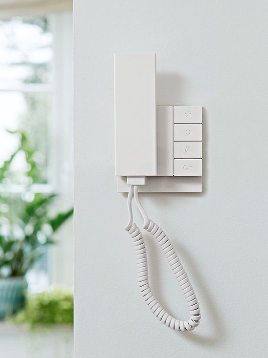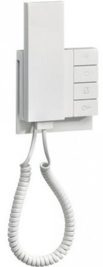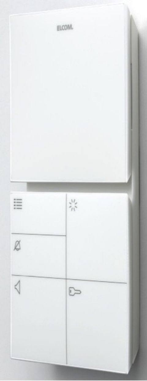 Die Handhörer-Innenstation ELCOM.FON aus glänzendem weißen Kunststoff überzeugt durch zeitlos-schlichtes Design.