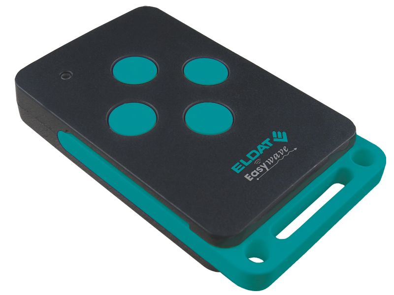 Der Batteriealarm wird durch eine LED signalisiert. 868.3MHz, Tasten türkis; Funktion 2xEIN/AUS; 1xAuf/Stopp/Zu; 4xImpuls