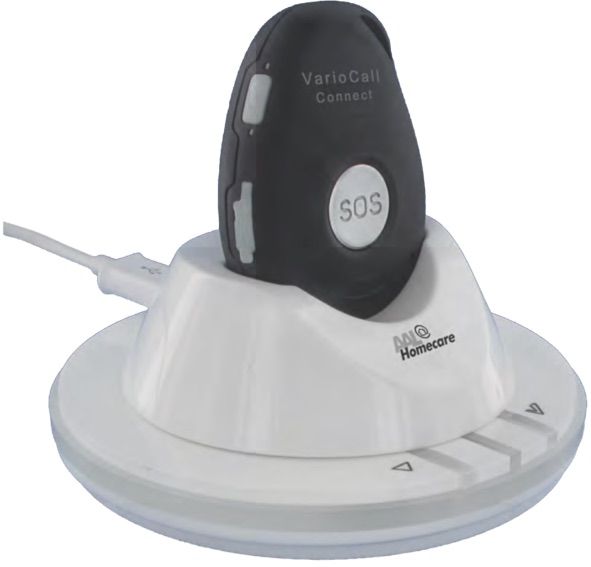 Alle AAL Profiline Funknotrufkomponenten können automatisch zu Hause mit dem GSM/GPS Sendeempfänger VarioCall-Connect gekoppelt werden und führen bei Auslösung zur gleichzeitigen Aktivierung des in der Ladeschale befindlichen VarioCall-Connect, welcher z.B. nachts auf dem Nachttisch stehen kann, oder tagsüber immer in der Nähe hingestellt werden kann, z.B. auf der Terrasse oder auch im Garten.